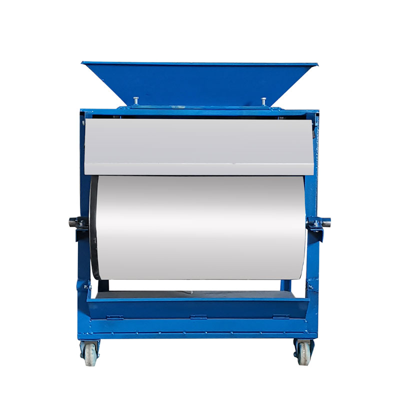 物料通過(guò)機(jī)械擺動(dòng)給料裝置均勻地給到正在旋轉(zhuǎn)的半磁滾筒前面磁場(chǎng)區(qū),磁性物質(zhì)被吸附在滾筒表面,并隨著滾筒一起轉(zhuǎn)動(dòng)。由于磁性材料與非磁性材料,在磁場(chǎng)中所受磁力不同,磁性顆粒在磁場(chǎng)內(nèi)受磁力作用吸附在滾筒表面,帶到非磁場(chǎng)區(qū)被甩下,非磁性和弱磁性顆粒由于他們所受磁力不同,拋離的軌跡也不同。磁性越強(qiáng)拋離中越靠近滾筒。周圍方向采用交變磁場(chǎng),并以一定的角度和周期來(lái)擺動(dòng),最后達(dá)到分離的作用。